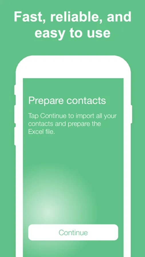 Have your iPhone or iPad contacts saved as an Excel file in just 3 taps. Have a look at the screenshots and you will see how simple it is. Open the app, tap Continue, tap Export, select your export method, and you’re done!