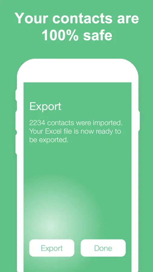 This app is 100% safe for your contacts. The backup and Excel export is done locally on your device. Unlike other apps, this one does not analyze or store your contacts on a remote server.