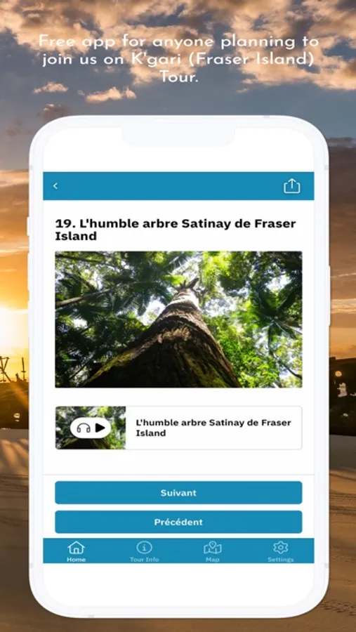 The app will work offline on K'gari (Fraser Island), but content must be first download for offline use. Connectivity on K'gari (Fraser Island) and at our mainland terminal is very limited. We recommend the Foreign Language Guide is downloaded and installed prior to arriving on the island. Once installed open the app before arriving at the mainland terminal to download content for offline use. You must have an internet connection the first time you open the app so you can download the content for offline use.