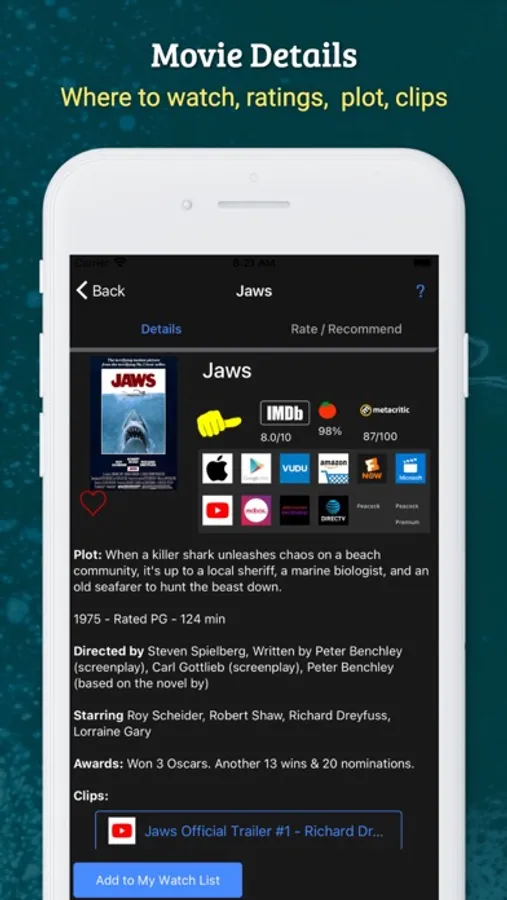 Use the MovieBreeze app so you can quickly find movies to watch that are personally recommended for YOU.