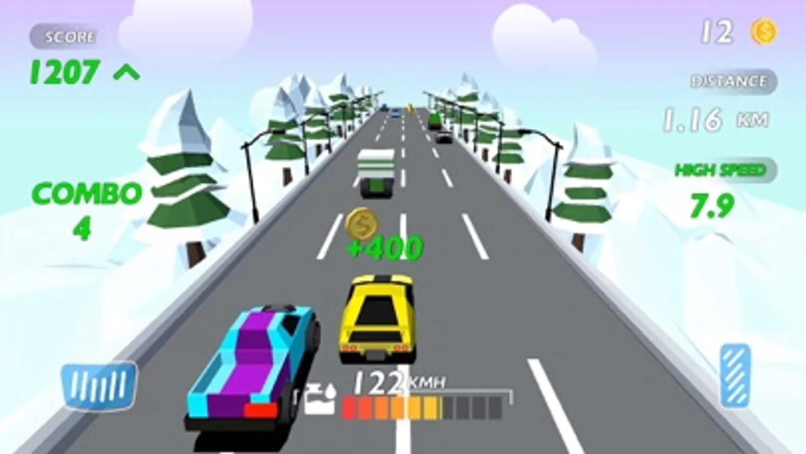Hold the throttle to accelerate forward and start dragging racing. Overtake every car on the road, try to climb up the pedals, start to leap, enjoy the speed of overtaking and leap.