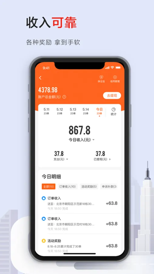 3. 收入丰厚——兼职骑士自动到账,专职骑士稳定收入
