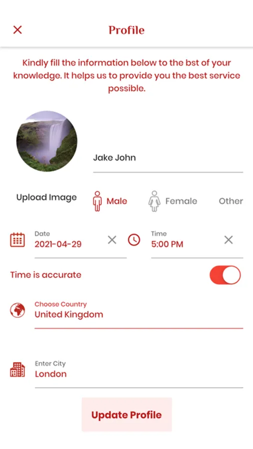 i) Enter your birth details and create your Profile