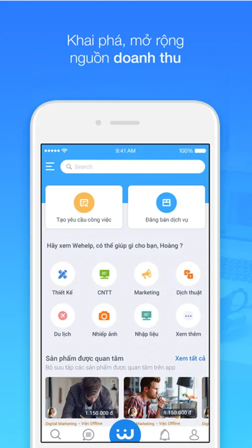 • VIỆC TỰ TÌM TỚI: Các Freelancer cũng như doanh nghiệp không cần kiếm việc, việc sẽ tự tìm tới. Khách hàng sẽ chủ động liên hệ và yêu cầu dịch vụ họ cần với bạn thông qua hệ thống chat và đặt hàng tiện dụng của chúng tôi.