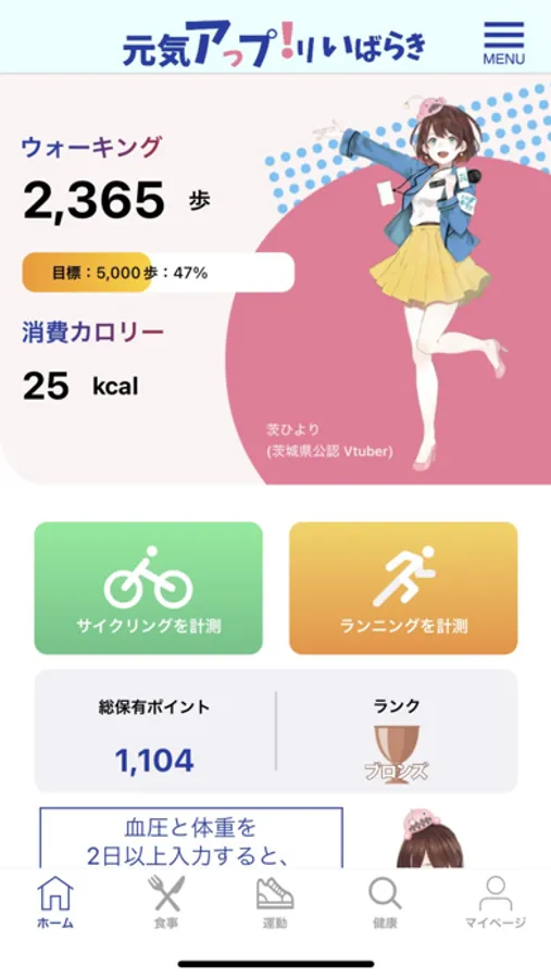 毎日の健康づくり活動(ウォーキングや健診受診など)がポイントになる健康アプリです。