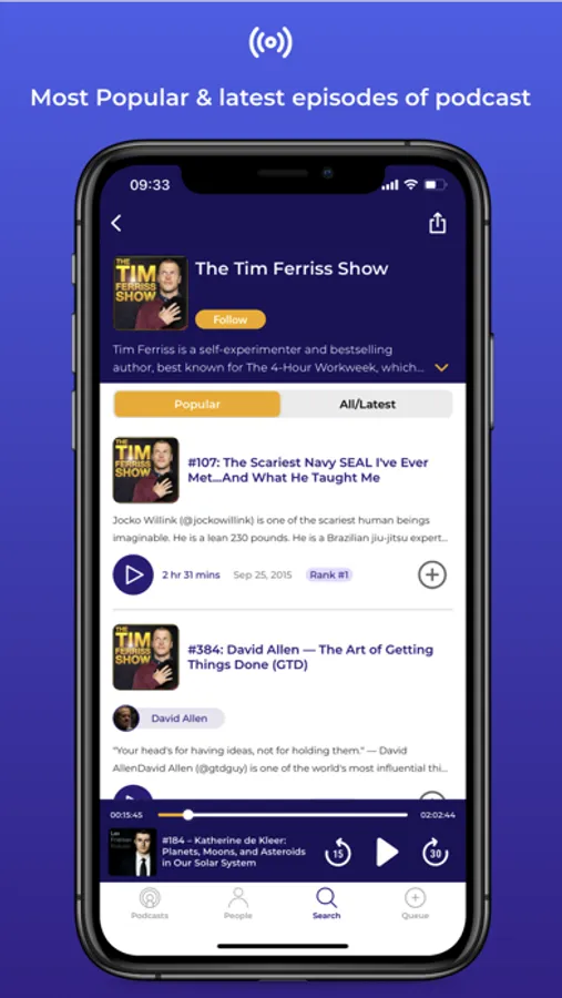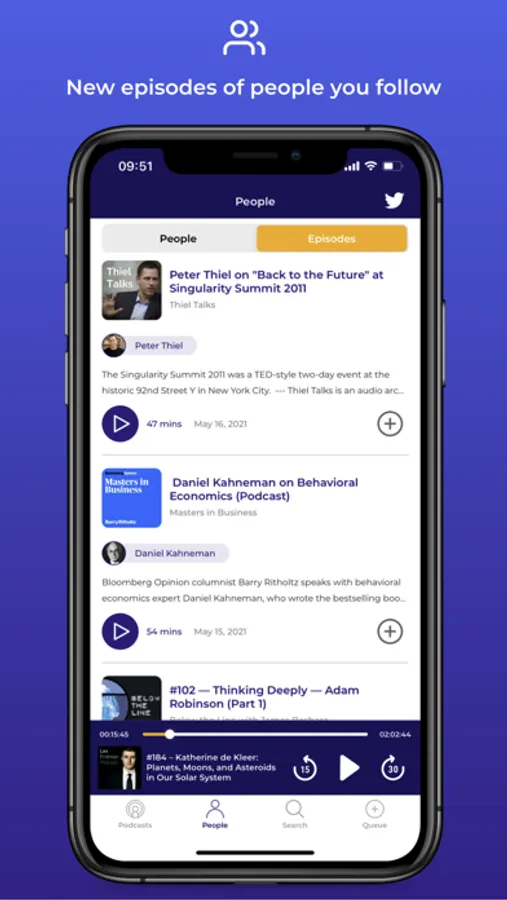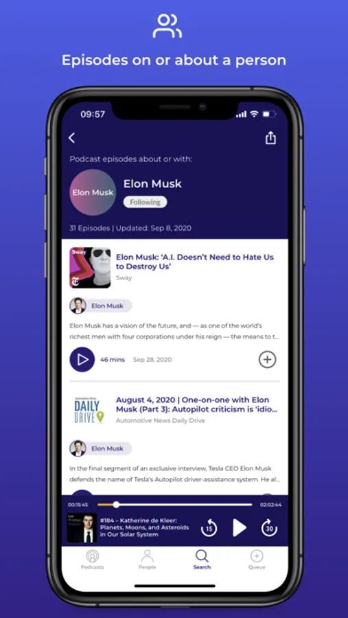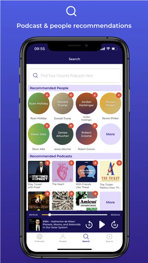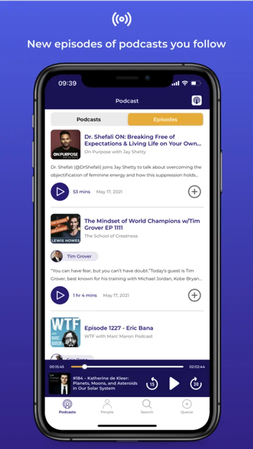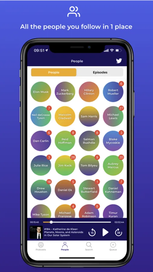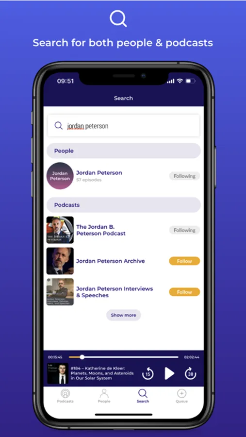 - Follow all of your favorite people to find and get updated on any podcasts they appear on.