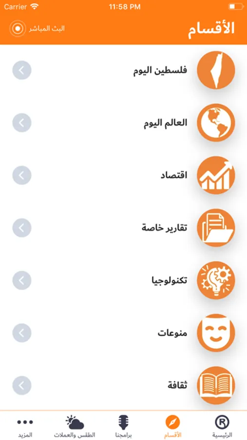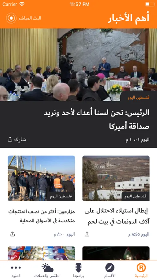 - الصفحة الرئيسية التي توفر لك اخر الاخبار و التقارير والفيديوهات.
