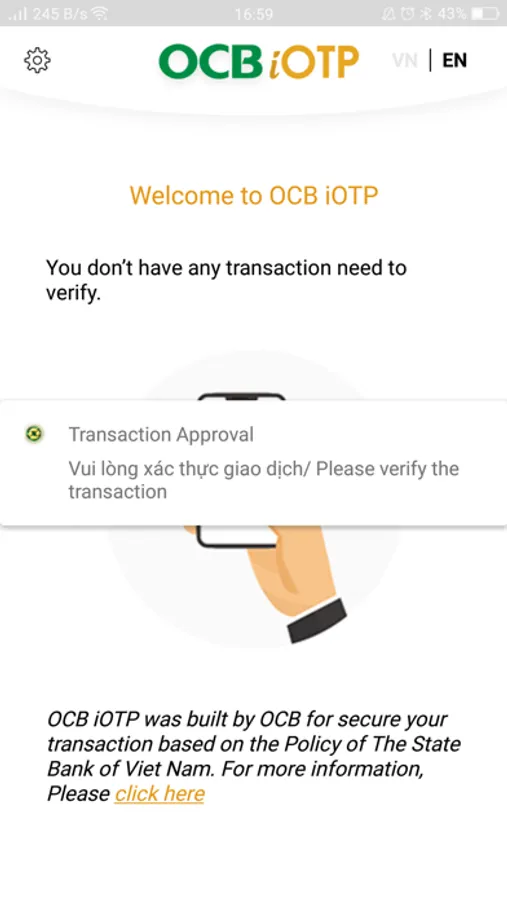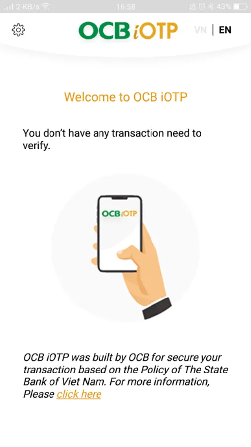OCB iOTP, is Soft OTP Advanced application, was built by OCB for secure your online transactions based on Policy of The State Bank of Viet Nam.