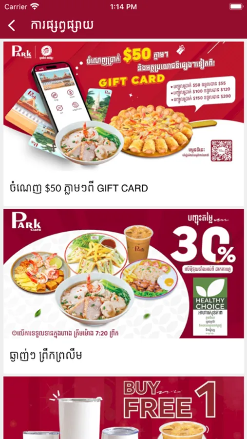 PARK CAFE Mobile App is a unique mobile application designed to provide conveniences to Park Café customers. On the app, customer can:
