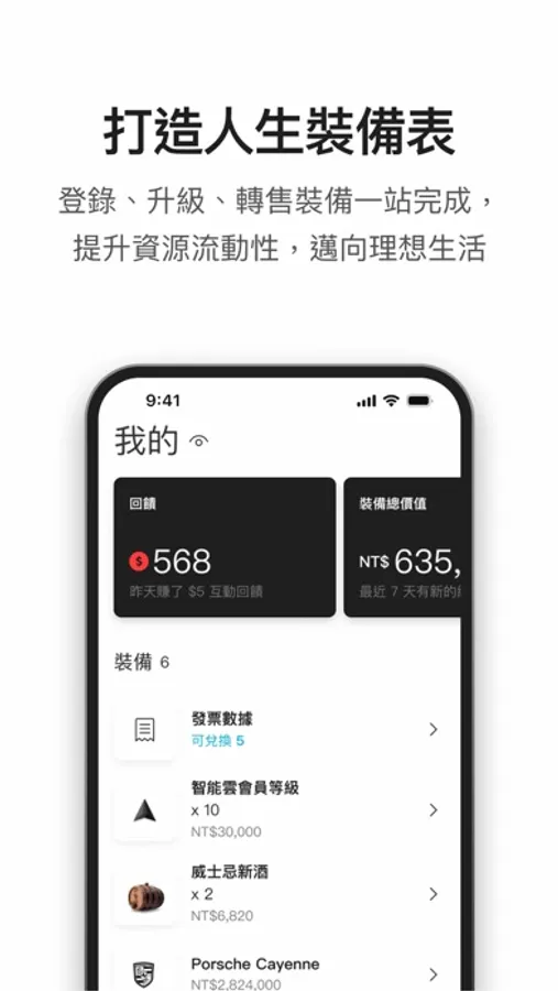 • 升級 - AIFIAN 提供多元購入方案,讓你輕鬆的將具有價值儲存特性的裝備納入收藏(已有汽車、酒類,其他品項陸續開放)。