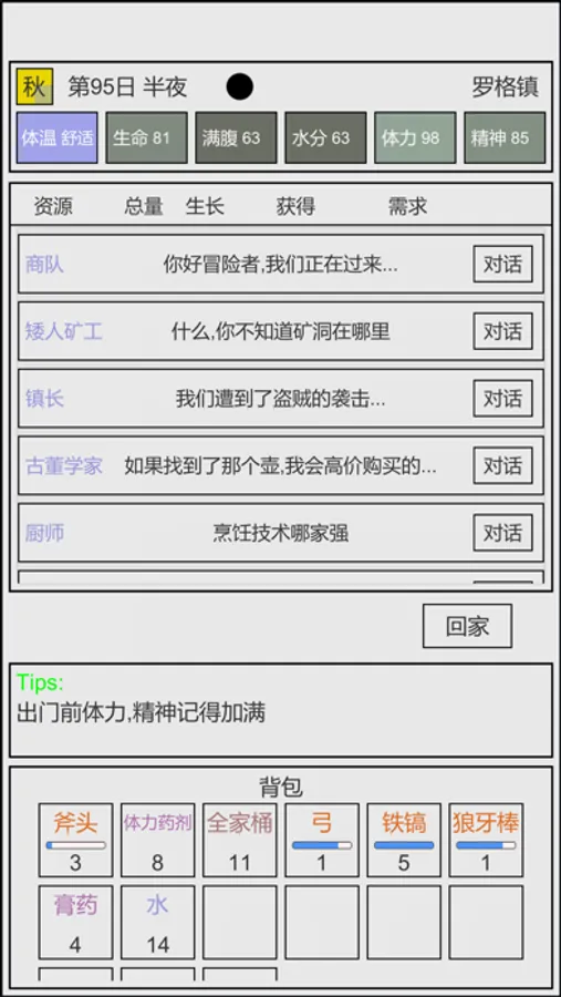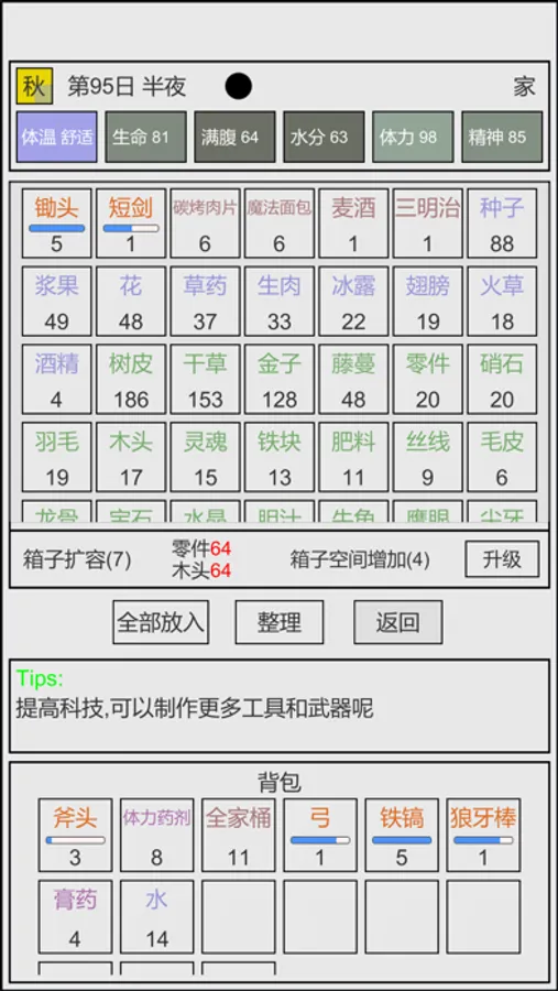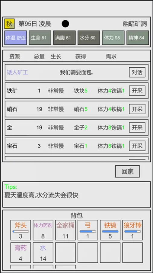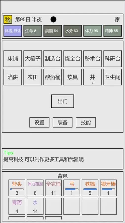 ·开局两个面包,所有食物自己收集食材,自己做