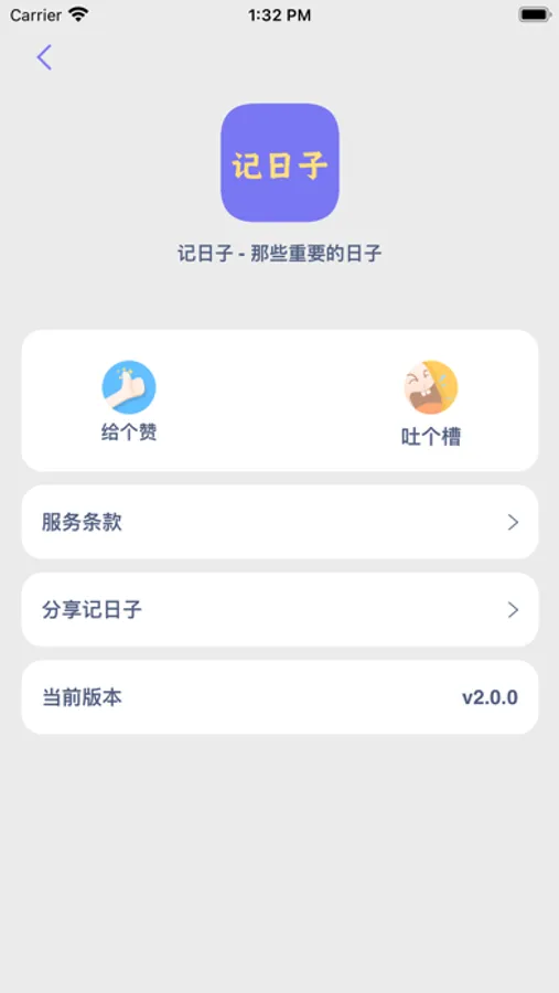全新的2.0系列大升级,精简业务、突出重点打造全新的产品。重构了整个内部框架,以支持后续持续的功能拓展。需要特别注意的是:”全新的2.0系列不在支持记事、发现等模块,把产品的主要定位方向由生活记事工具改为记录那些重要的日子,着重记日子业务”。为得到App Store 推荐官的青睐,上榜官方精品推荐而不断努力。