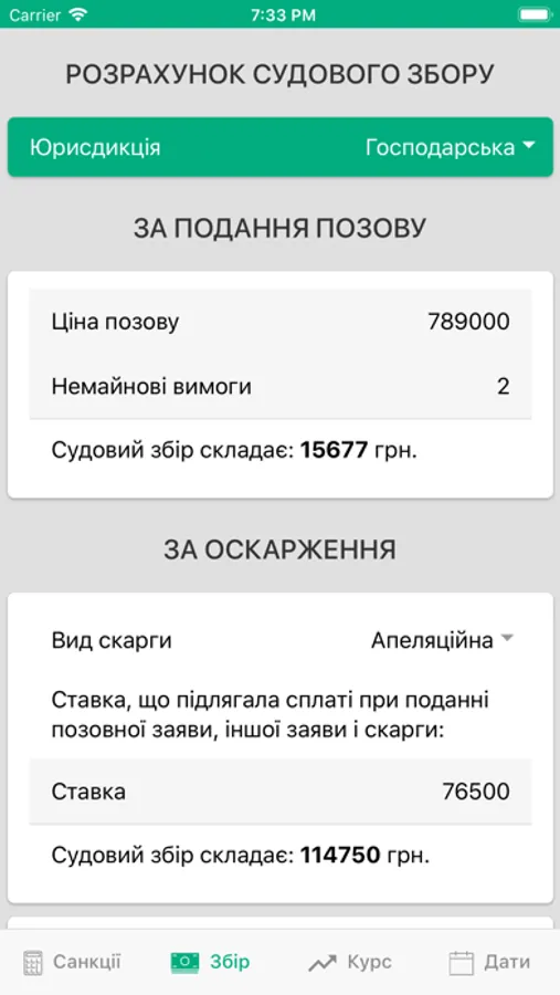 - калькулятор судового збору