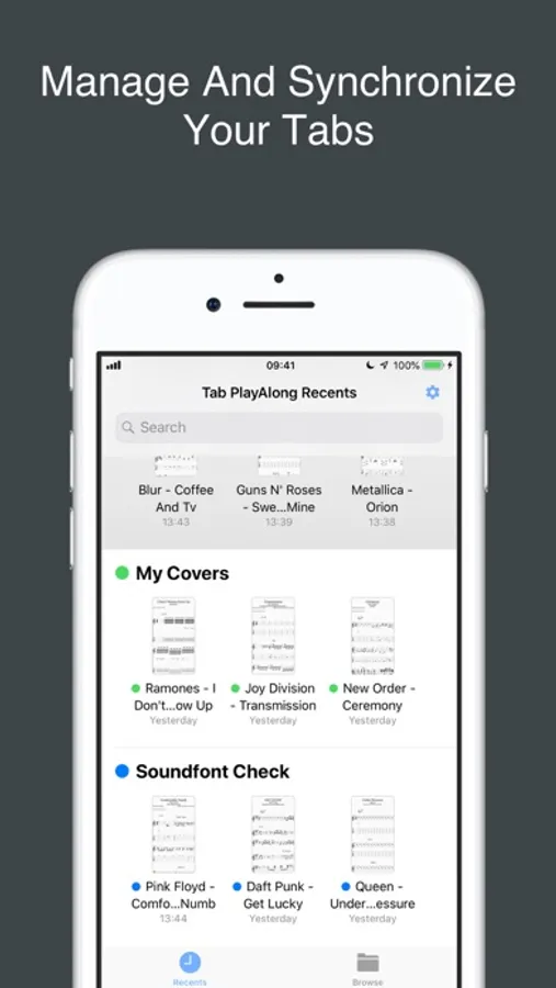 Tab PlayAlong is an app that allows you to manage, view, play guitar tabs, and play along with it!