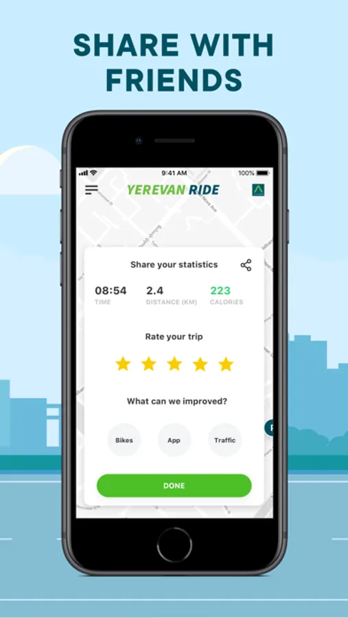 Use YerevanRide for your commute to work, to explore Yerevan with friends, or to live a greener life.