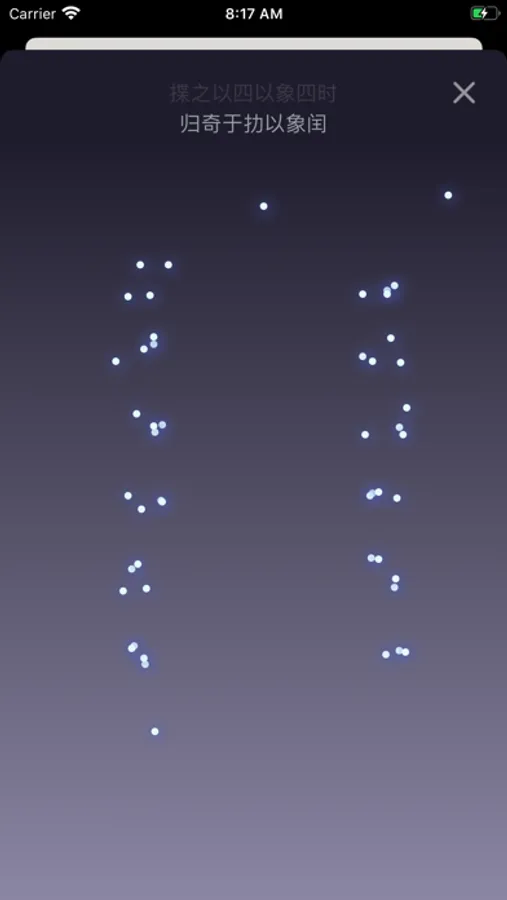 使用古老的大衍筮法,即五十根蓍草来推演每一爻,经十八次演算得出一个卦象,并有动画显示演卦过程。