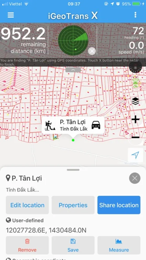 - Measure the distance between two specific locations by coordinates or selected on the map.