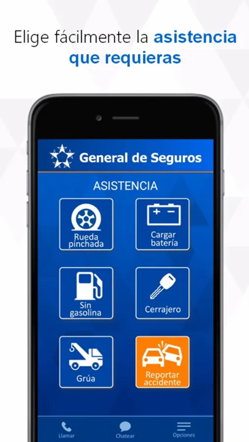 Siéntase protegido con la aplicación de Asistencia de General de Seguros en su dispositivo móvil. Desde reportar un accidente hasta solicitar una grúa, elija fácilmente la asistencia que requiera las 24 horas del día, 365 días del año.