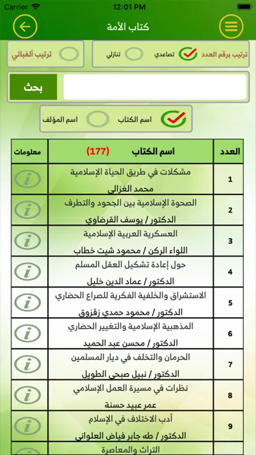 - البحث عن كلمة أو نص ضمن الكتاب الحالي الذي يستعرضه المستخدم.