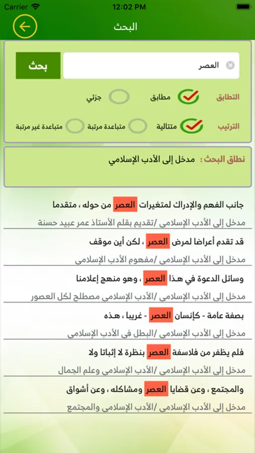 - البحث في عناوين الأبحاث، مع تلوين نتائج البحث بلون مميز.