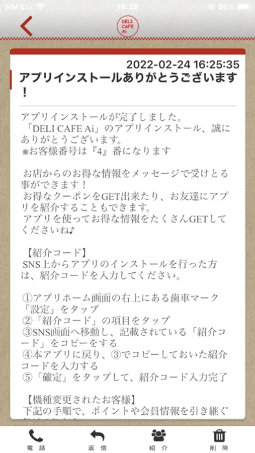 DELI CAFE AiのアプリをSNSを通じてお友達に紹介する事ができます。