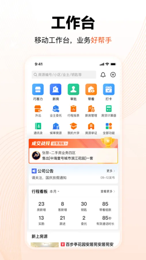 让经纪人可以随时随地查看房源客源、精准记录带看路径、隐号联系业主客户,