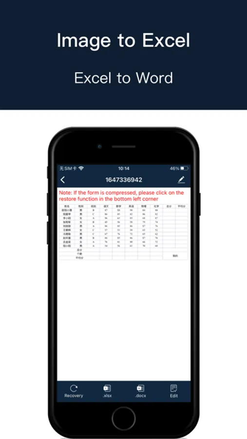 - Supports converting Excel in pictures to Excel files, intelligently parsing table text, and quickly recognizing and generating Excel tables