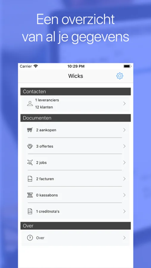 Wicks mobile is een beknopte versie van Wicks voor desktop. Je kan er al je gegevens mee raadplegen zoals de contactgegevens van al je contacten, al je documenten raadplegen en zoveel meer.