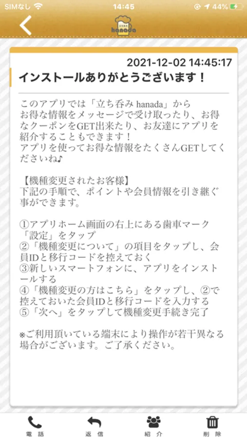 立ち呑みhanadaのアプリをSNSを通じてお友達に紹介する事ができます。