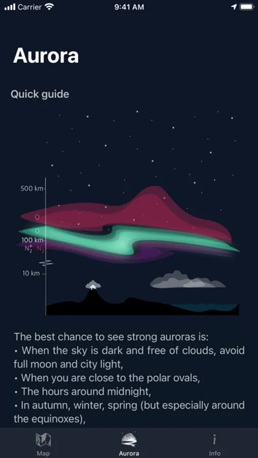Aurora Nowcast let you discover, experience and explore the mystic phenomena Aurora.