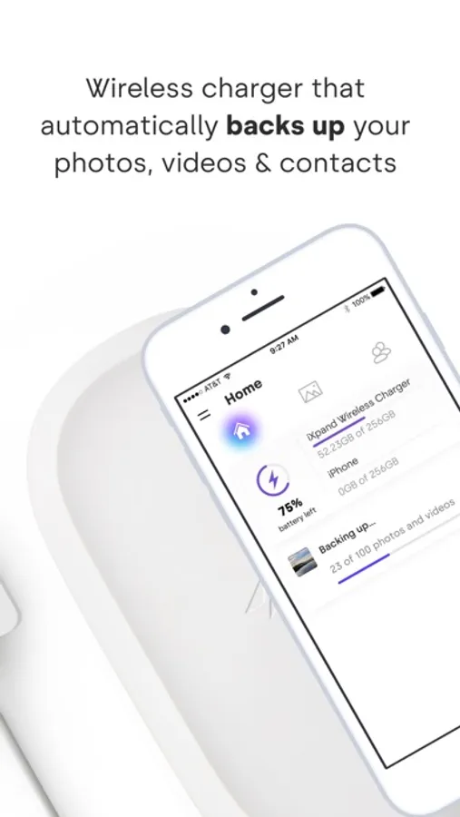 The SanDisk Ixpand™ Charger Application allows you to automatically backup your photos and videos in full resolution to your 10W Ixpand Wireless Charger and free up space on your phone.1 Once the photos and videos are backed up, the application allows you to manage those photos on the charger and restore them to your phone.