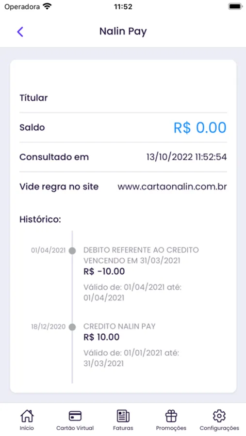 É o aplicativo do cartão Nalin, cartão administrado pela A CREDIT ADMINISTRADORA DE CARTÕES DE CREDITO LTDA. Com acesso disponível para todos os clientes da Lojas Nalin e do Nalin Shopping que possuem cadastro de crédito aprovado para uso do Cartão Nalin. Seu objetivo de transmitir informações do cadastro do cartão para seus clientes ativos já aprovados.
