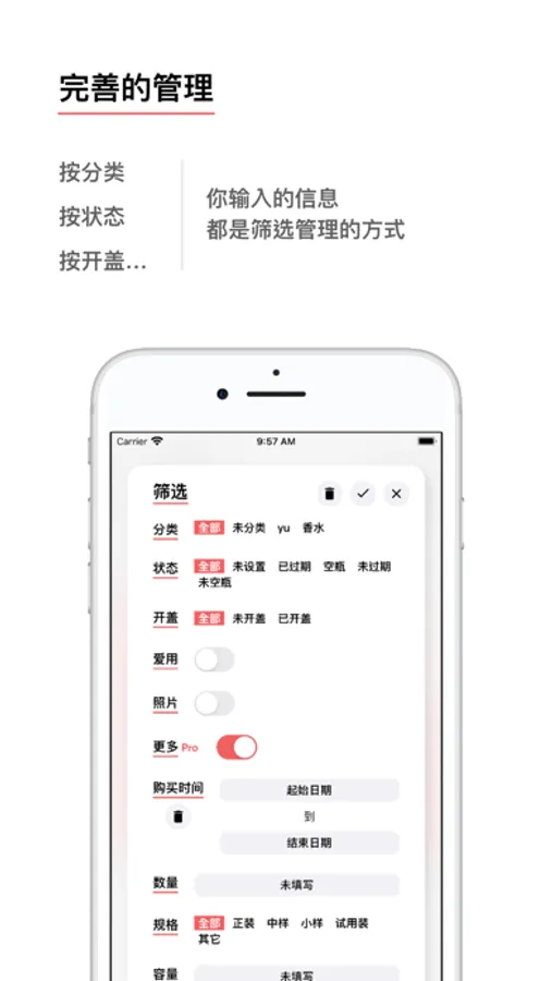 - “红线”App是你的化妆品管理助手,录入你的化妆台上那些琳琅满目的产品,在“红线”里面合理,高效的管理它们,不再困扰。
