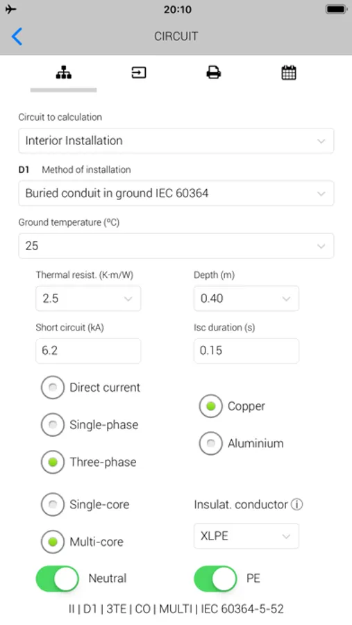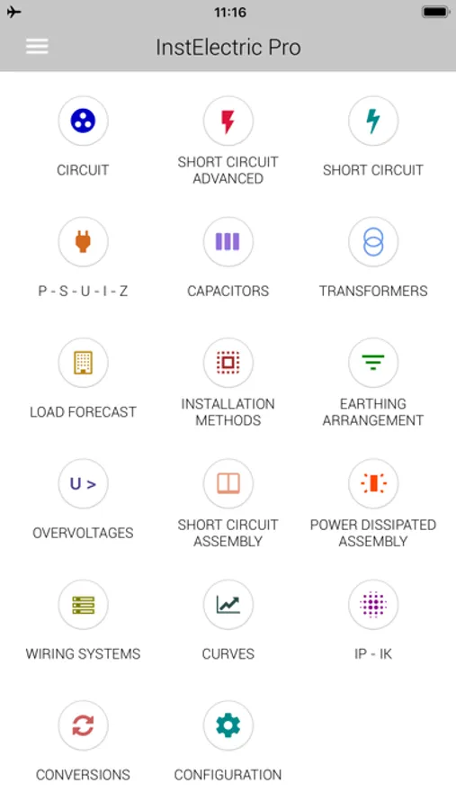 Tool to support the calculation of electrical installations that will allow the user (designer/electrician/technician) to perform electrical calculations easily and quickly.
