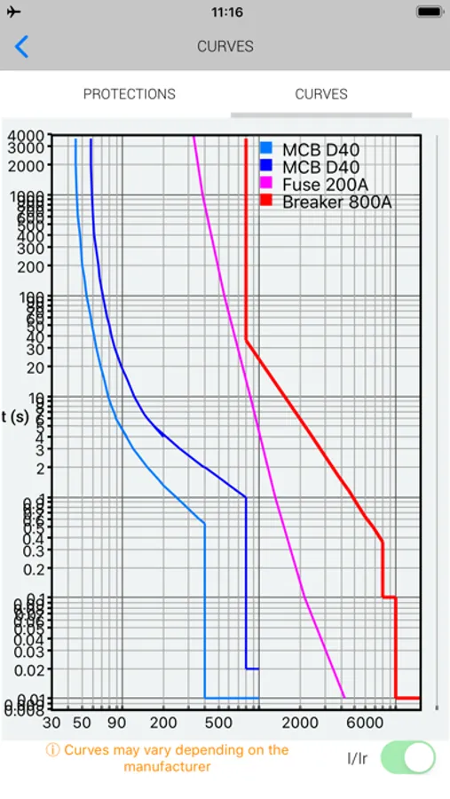 · Circuits with automatic circuit breaker until In=4000 A (Ir rating setting), maximum fuse In=1600 A (gG type), maximum 12 conductors parallel per phase, maximum size 630 mm²