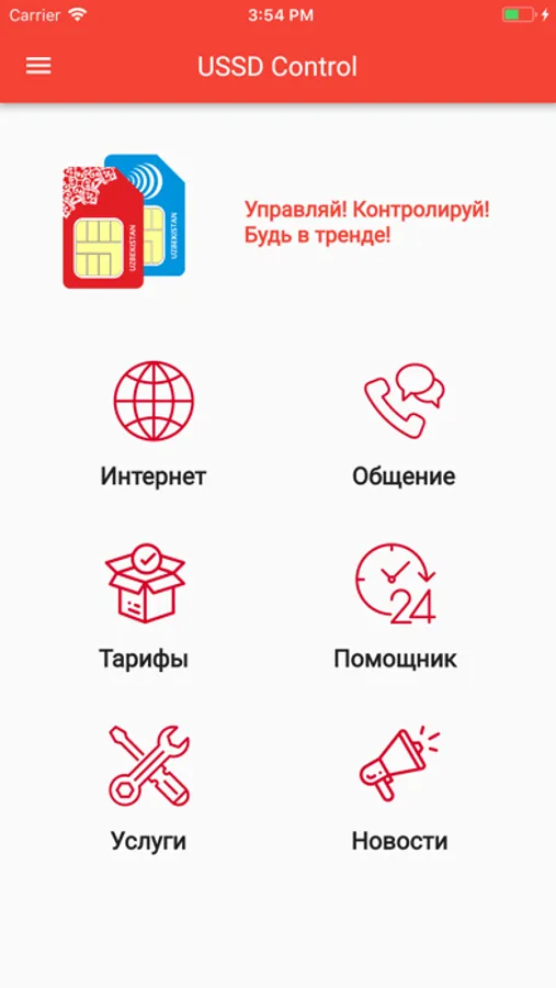 Управляй! Контролируй! Будь в тренде! Наше приложение предоставляет все новые акции, самые актуальные тарифы, интернет пакеты и многое другое. С USSD Control вы получаете доступ к обновленным тарифам благодаря нашему UpToDate сервису. Никогда не пропустите новости и обновления тарифных планов и интернет пакетов с помощью нашей Push уведомлений!