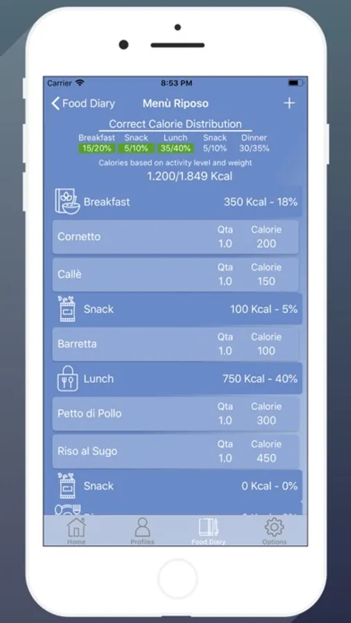 - Food Diary Section