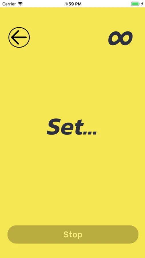 After selecting your amount of colors and the interval at which the light will flash on the screen, your workout will start! Out of the colors you have selected, StrobeLite will select a color at random to flash on the screen, which means you have to REACT ON THE FLY and perform the action associated with that color.