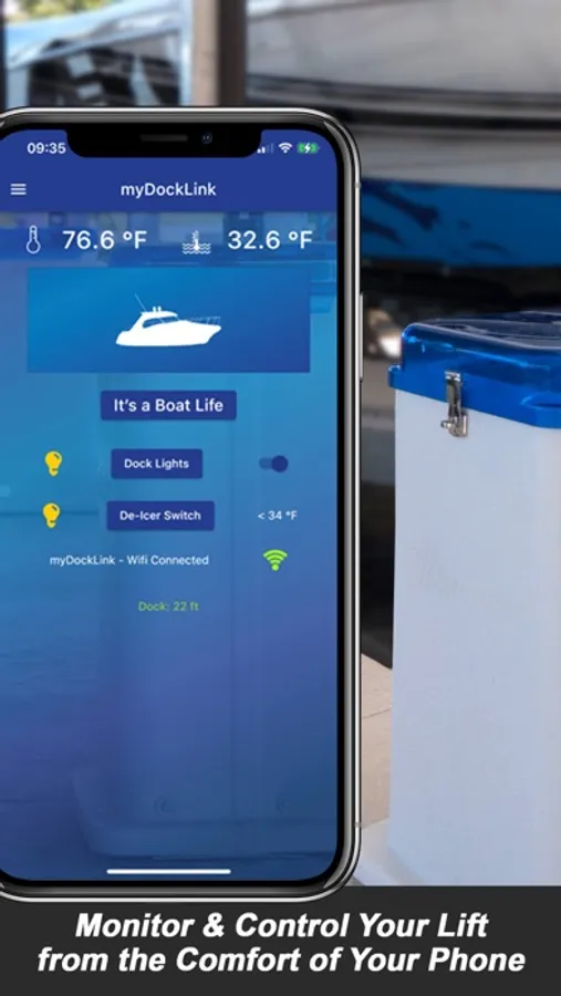 Forget those key fobs to raise and lower your boat. The Firstmate app allows you to connect to your boat lift and raise and lower your boat with ease. No more finding the remotes for each lift. With our mobile application, you can raise and lower your boat easily and securely. You can also remotely turn on or off dock lights or even your De-Icer.