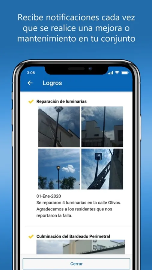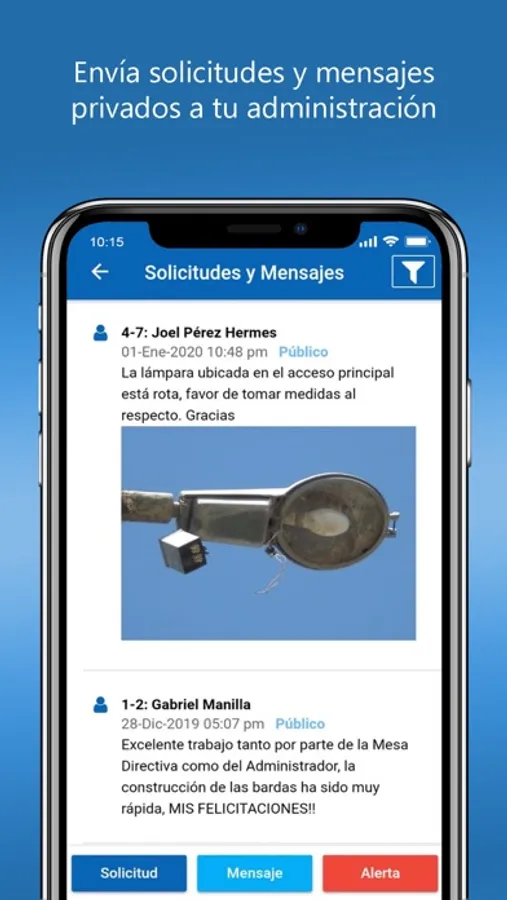 • Comentarios, avisos, alertas y solicitudes de los residentes