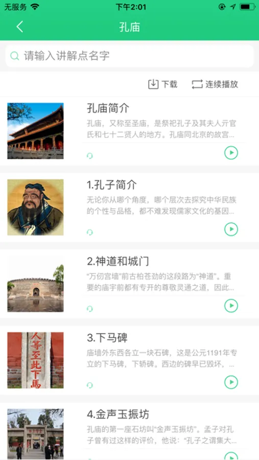 孔庙智能讲解提供了专业的景点讲解语音导游服务,通过GPS+微定位景区导览技术,在孔庙你可以实现走到哪里听到哪里,不同风格真人大牌主播的语音导览让你聆听最专业的孔庙讲解,就像导游带着出游一样。