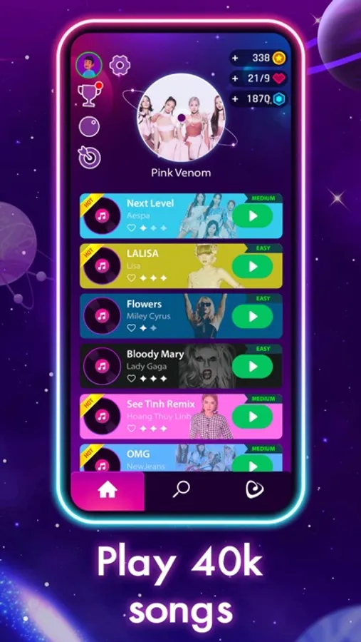Let's feel the beat in this music game with frequently updated hit songs from top singers like Charlie Puth, Alan Walker, Sia etc.