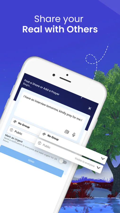 ● Prayers can be chosen to be made visible publicly or can be added to a specific group or to only tagged users.