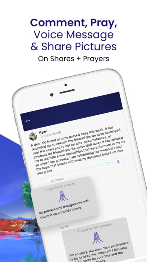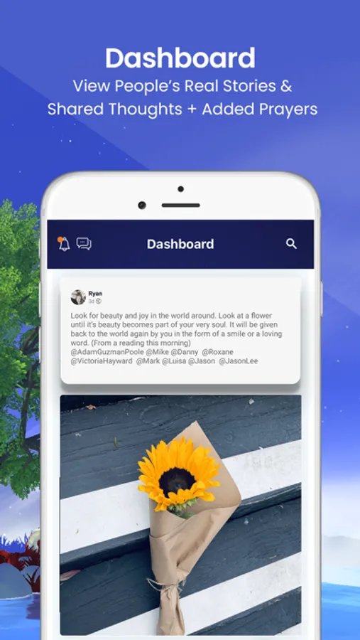 ● Create a prayer or share your positive thoughts by writing a post and have the option to attach photos and voice notes.