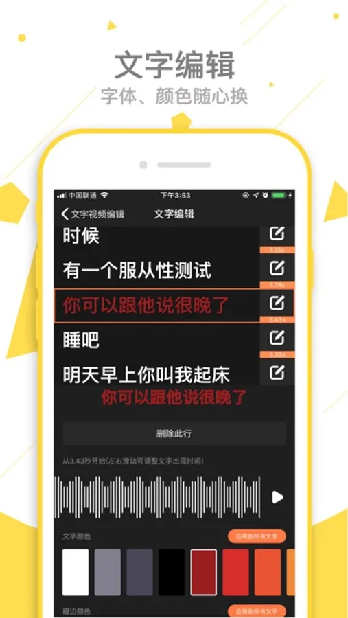 3.方便快捷修改文字内容、文字颜色、字体和文字出现时间;