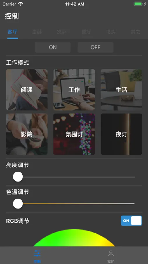 本应用可以和联盟内的所有智能灯无缝对接,提供多种场景模式,一键柔和变光