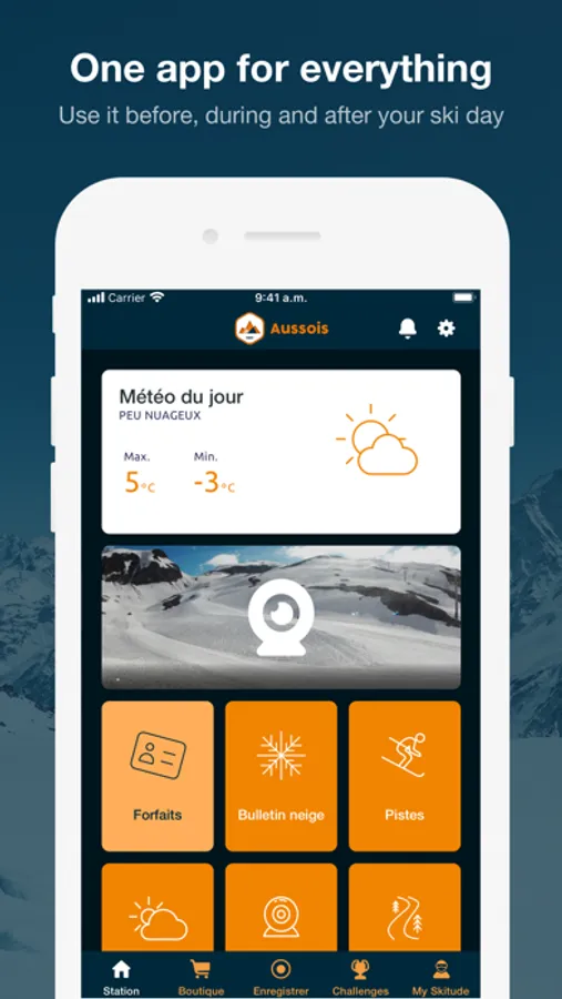 The App offers a range of features designed to optimize your experience before, during and after your trip. It’s very simple, plan your getaway and get real time updates on slope conditions. Set up your Skitude profile and track your activities on the slopes to get detailed stats about all your activities. And that’s not all, take part in challenges competing with the whole community, to be in with a chance of winning incredible prizes.