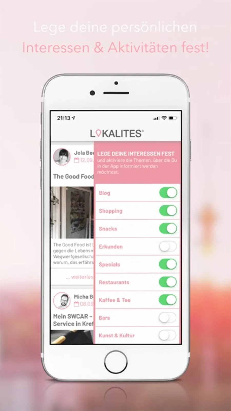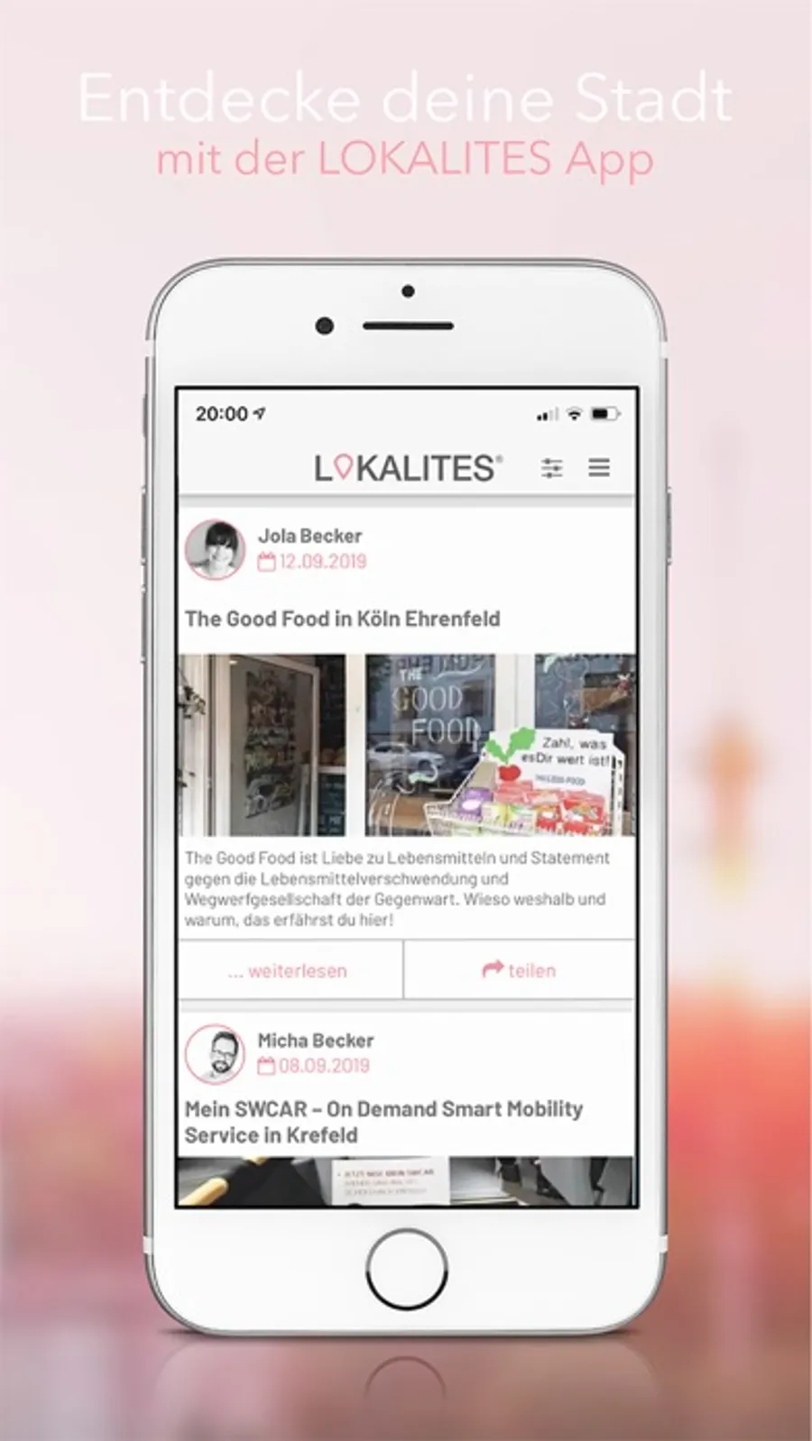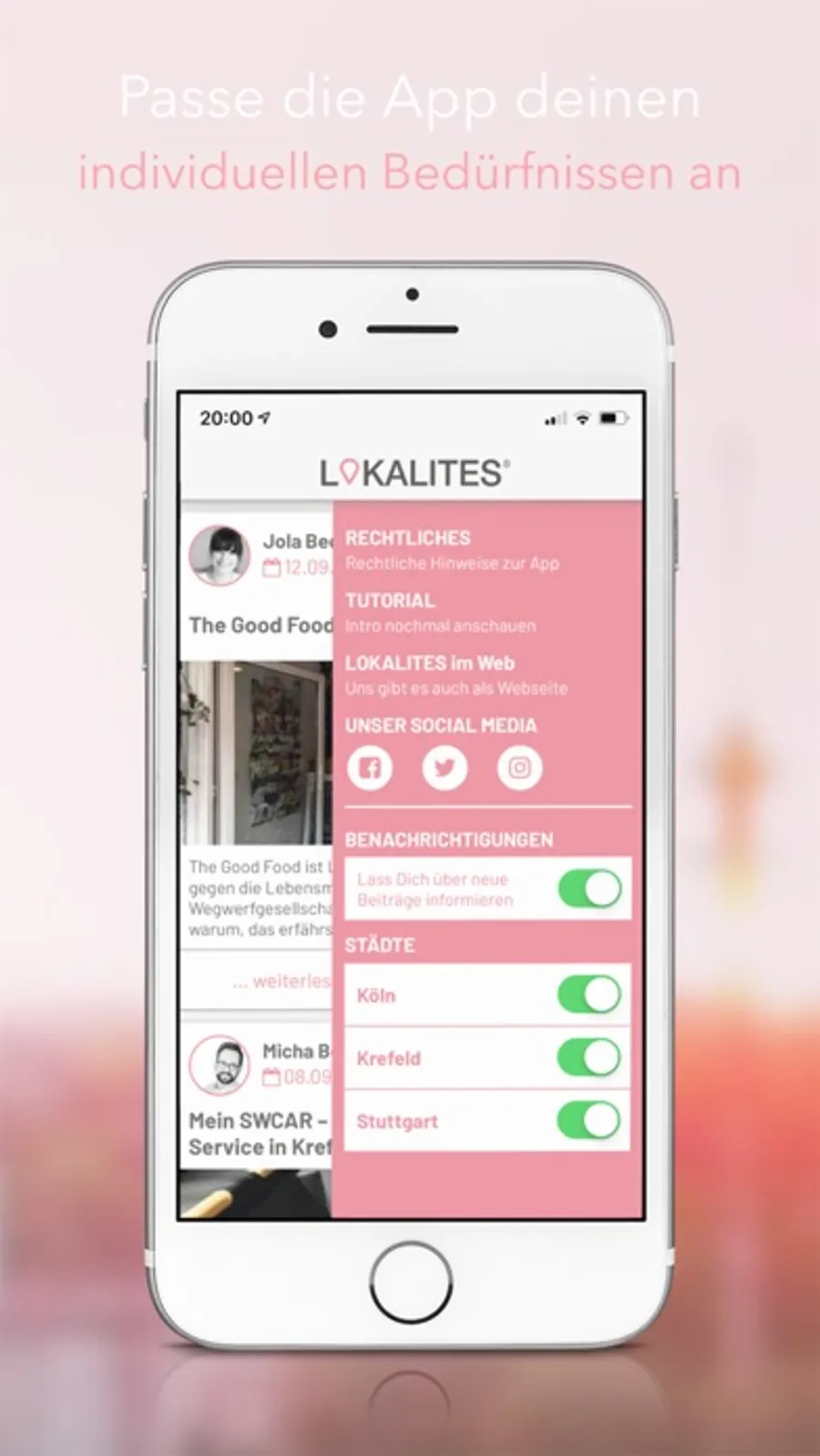 Mit der LOKALITES App hast du deine Stadt als kleinen Cityguide immer mit dabei und entscheidest, welche der verfügbaren Städte dir angezeigt werden sollen.