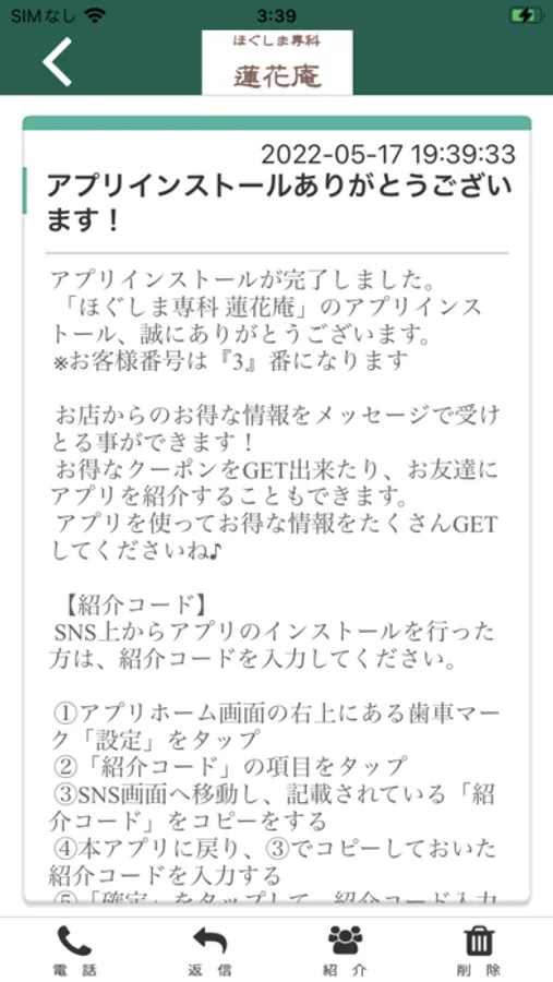蓮花庵のアプリをSNSを通じてお友達に紹介する事ができます。