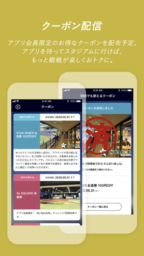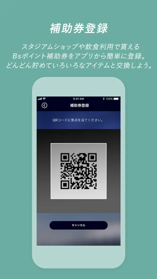 スタジアムショップや飲食利用で貰えるBsポイント補助券をアプリから簡単に登録。